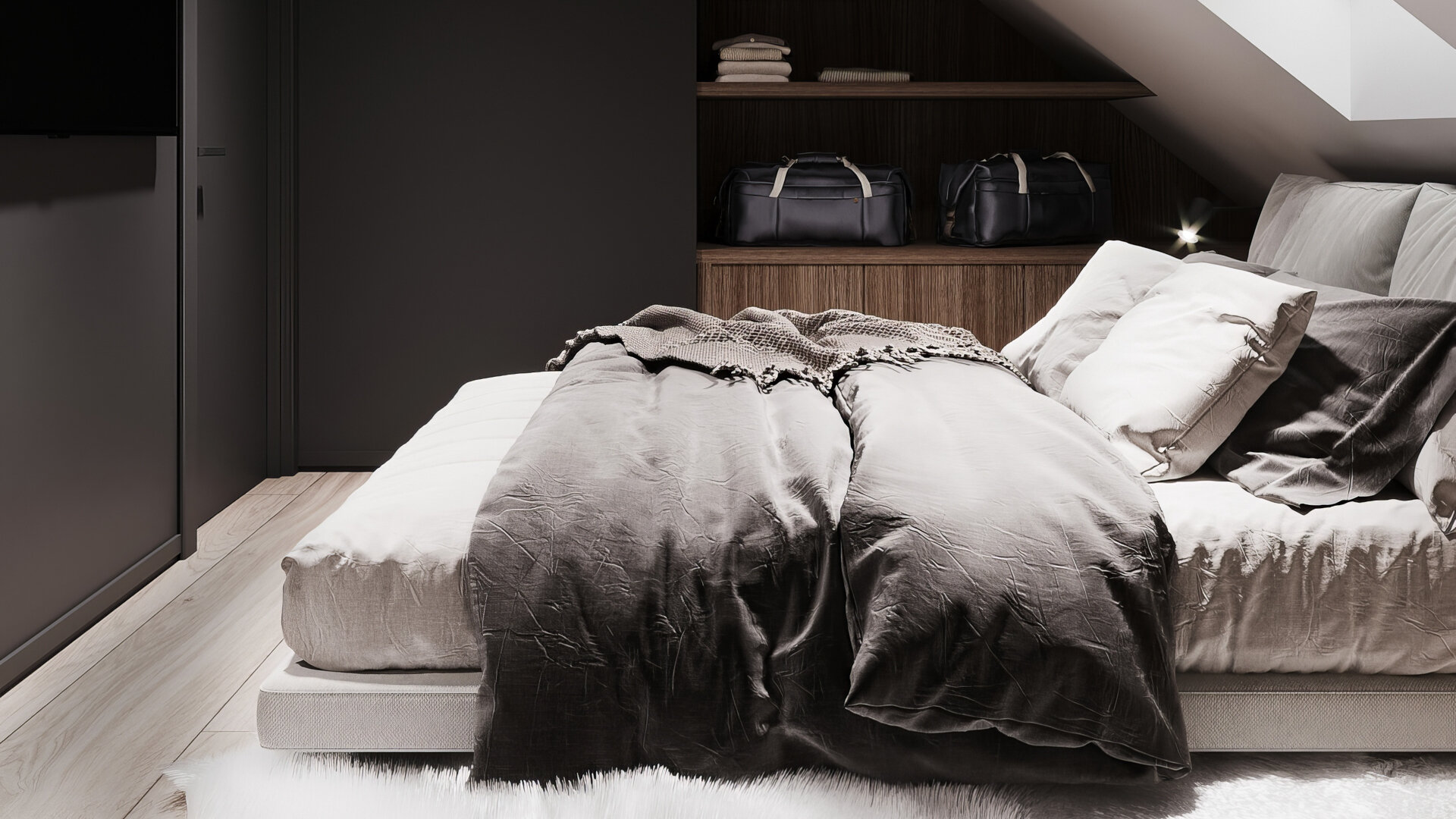 łóżko 180x200, TV, komplet pościeli