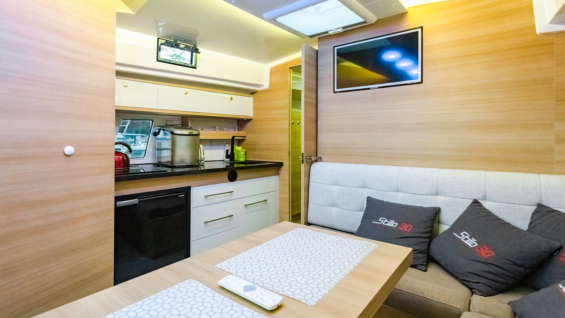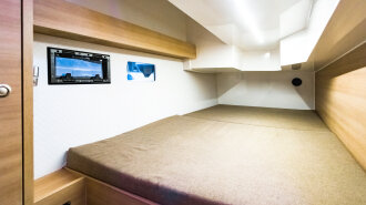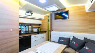 - TV SMART (m.in. Netflix, HBO Max, YouTube), WiFi (bez limitów), RADIO / CD/ MP3/ Bluetooth plus sterowanie radiem z kokpitu sternika