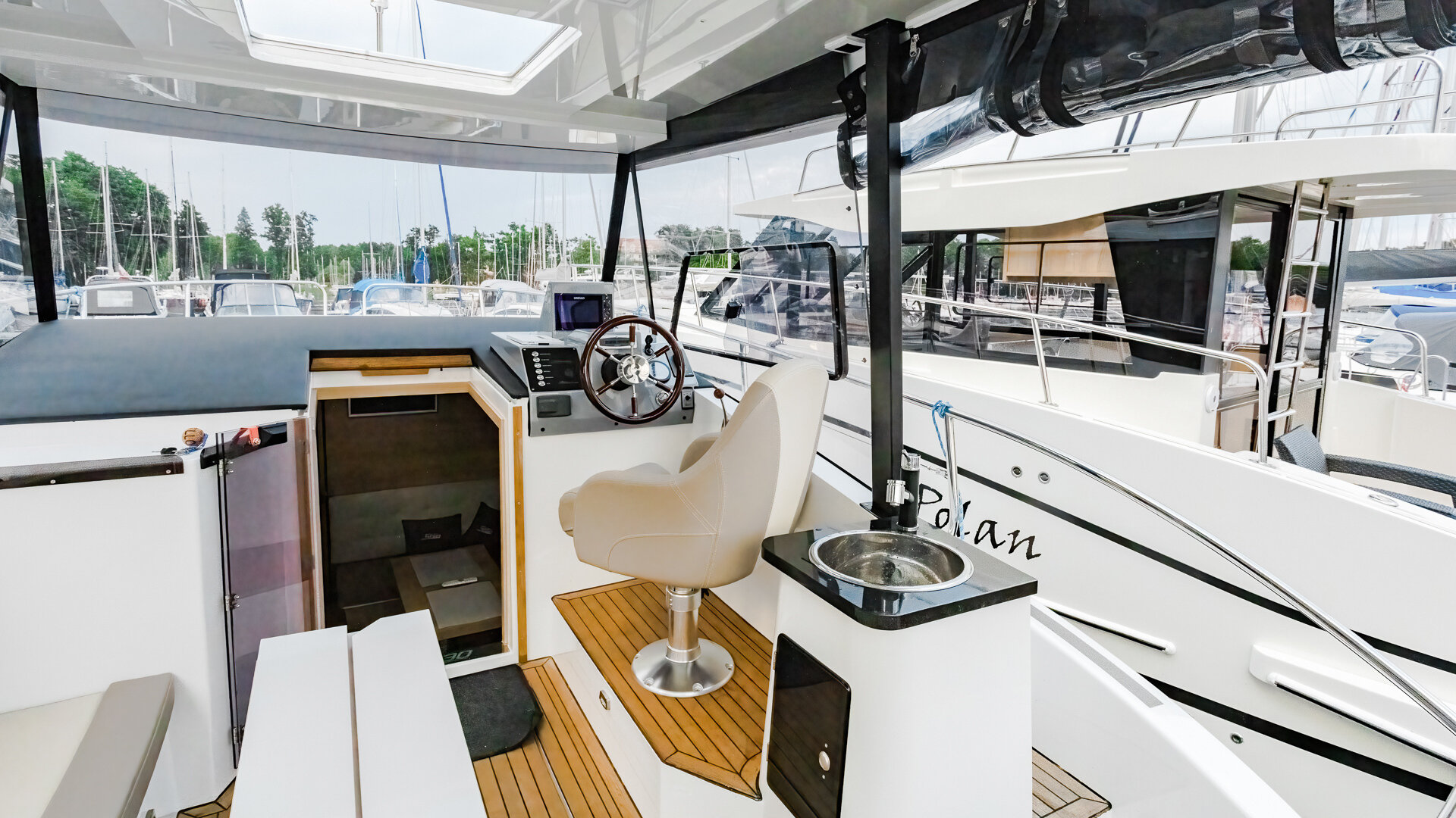 Szerokie półpokłady, obszerny kokpit, łatwo dostępne platformy kąpielowe na zewnątrz oraz przemyślane detale ergonomicznego wnętrza, wykończone przy użyciu najwyższej jakości materiałów – to wszystko gwarantuje wygodę nawet w najdłuższych rejsach. Możliwość użytkowania jachtu bez posiadania patentu.