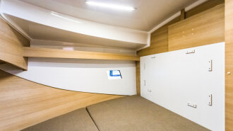 - Koje: 4 podwójne (w tym: 1 rozkładana w mesie), koja dziobowa i dwie rufowe zamykane, komfortowe materace w sypialniach z pianką termo aktywną, dodatkowe oświetlanie w kabinach - lampki nocne